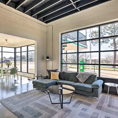 The welcoming Unique Texas Home In Converted Gas Station! offers swift access to Sengelmann Hall, which is about 20 minutes' walk away. A writing table, high-speed internet, and a multi-channel TV are provided in the rooms, as well as a refrigerator, an oven, and kitchenware in a kitchen.